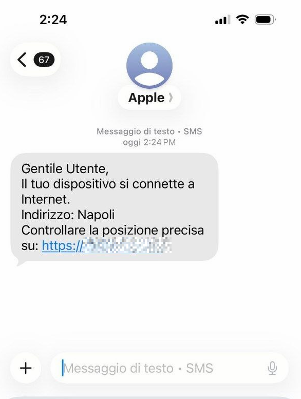 The investigation started after receiving a suspicious SMS spoofed as coming from Apple.