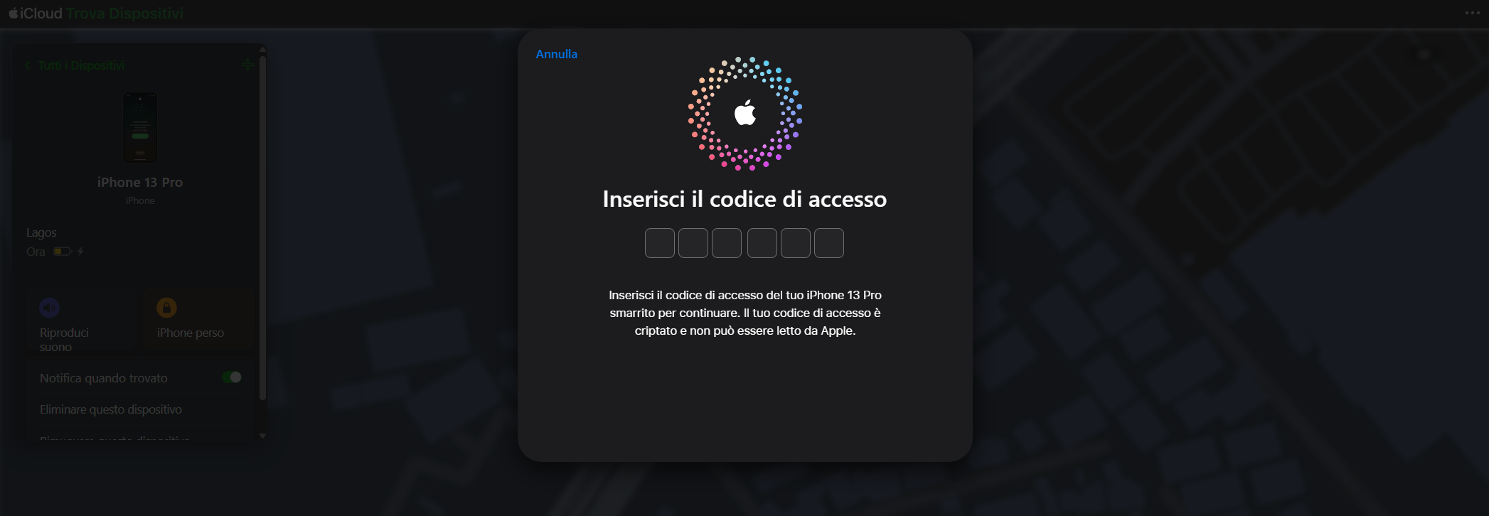 Inspecting the phishing page confirmed it: the interface referenced the exact iPhone model that had been stolen, meaning the attackers were pulling device information from the recovery process to craft a convincing, targeted lure.